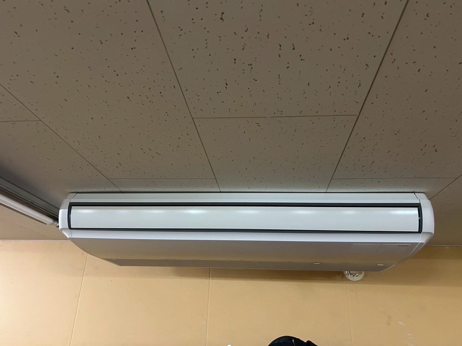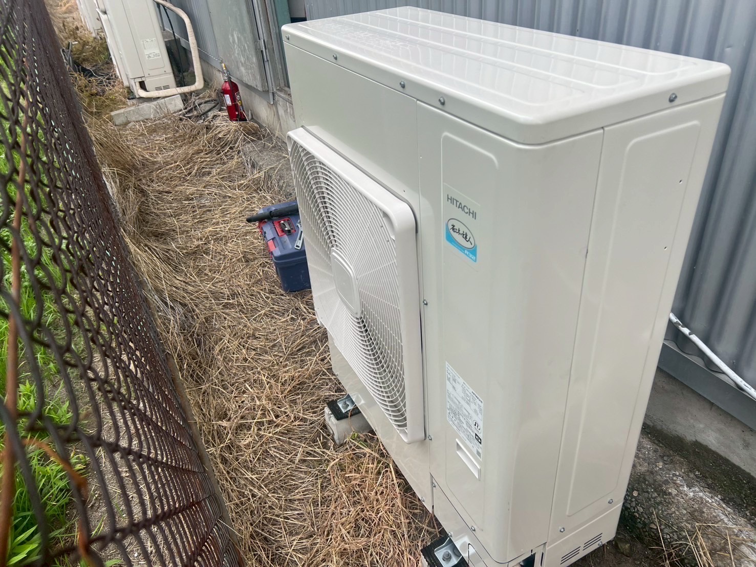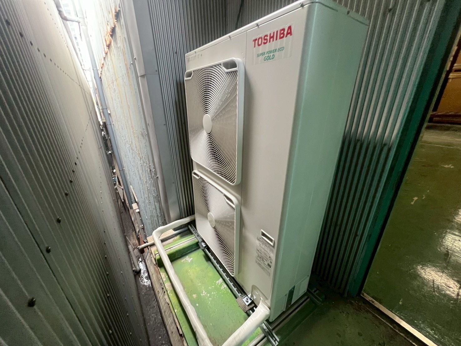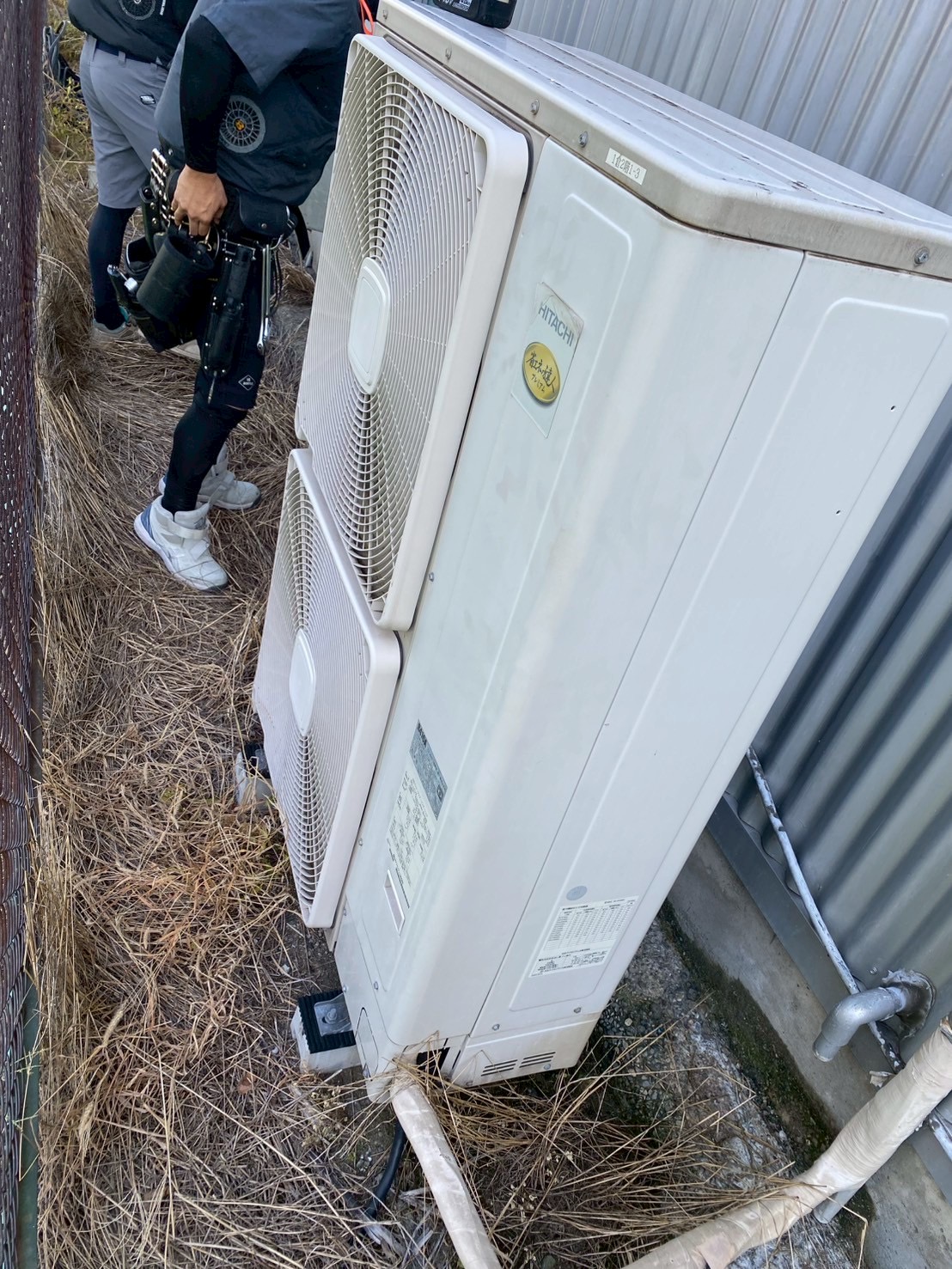 備考・コメント | 今回は、倉庫内のエアコン2台の調子が悪いとの事でご相談頂き施工させて頂きました! 日立既存機器2台は、年式が古く1台はエラー・1台は付いたり消えたりと安定しない状況でした。 ご希望で内装をいじりたくないとの事でしたので天井吊り金具の寸法が同じものを探し今回は同寸法の8馬力東芝・6馬力日立を設置させて頂きました! 倉庫内天井高は約6M程ありましたが、事前にコンテナにて作業できる様足場を用意して頂きました♪ 既存機器を取り外し、ガス回収作業を行います。 高さもあり足場も少し不安定の中機器の取り外しを致しました! 8馬力は、重量もとても重い為3人がかりで慎重に機器を外します。 既存配管再利用でしたので窒素にて配管内洗浄を行いました! 新しい機器もとても重たいので室内機・室外機複数人にて慎重に丁寧に搬入し据付致しました! 吊元金具と同じ寸法の機器でしたのでスムーズに室内機吊り込み出来ました♪ 各配管類を再加工し室内機・室外機へ接続していきます! ワイヤードリモコンも新しくなりバックライト付き液晶画面が広くなり操作性UPです♪ 最後に真空引き・試運転・通水テストを行い作業完了です♪ 今回は、高所にて重量物を設置するという事もあり5名作業にて約5時間程で完了しました! お客様には、価格・見積もりから施工までのスピード感にとても満足して頂けました♪ 倉庫内は、冷房がしっかりと効きとても涼しくなりましたね♪ 真夏のエアコントラブルはプロのエアコン専門店エアコンげんきにお任せ下さい!! 現地調査・見積もり完全無料! グーグル口コミ高評価多数獲得中! 価格・対応力・提案内容・施工に自信を持ってます♪ 業務用エアコンの事はプロのエアコン専門店エアコンげんきにご安心してお任せください! お客様に100%満足をして頂けるよう有資格者が丁寧に寄り添いご対応させて頂きます! お客様のお問い合わせ心よりお待ちしております。 |