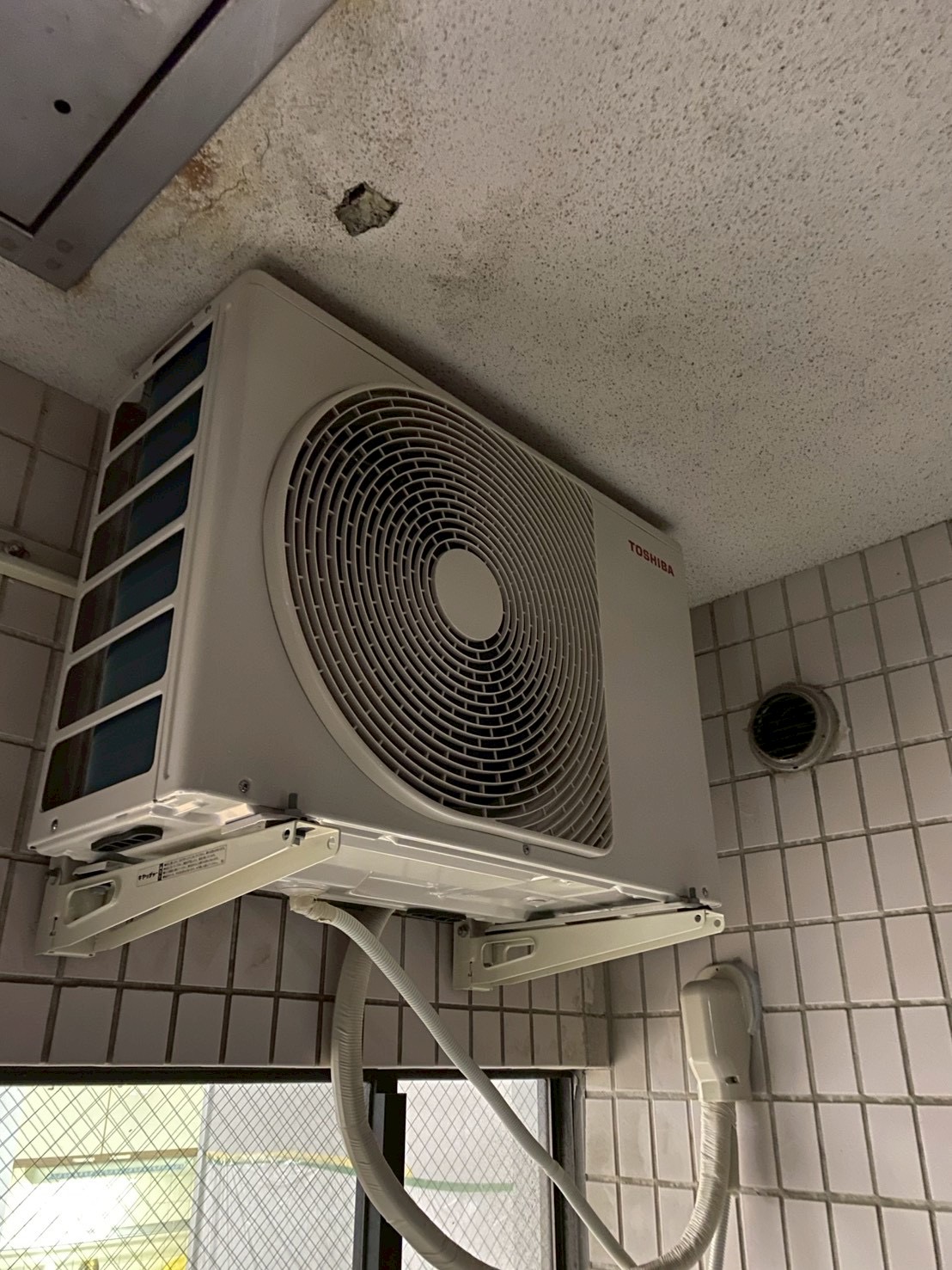 | 備考・コメント | 今回は、ビルオーナー様からエアコン設置が出来ない(配管を通す穴が無い室外機設置位置が分からない)他社様数社にお断りされてしまったとご相談頂き施工させて頂きました! 現地調査をさせて頂きましたが、エアコンの配管穴が無く簡単にエアコン設置が出来ない状況でした。 新たにエアコン用配管穴を開ける必要がある為、エアコン設置・ドレン配管勾配の問題がクリアできる穴あけ位置を見つけていきます。 今回はユニットバスに点検口(天井裏)があり一部ユニットバス天井裏へ配管を回せば穴あけ工事をしてエアコン排水の勾配確保も出来る判断が出来たので写真のルートにて配管設備・コンクリート躯体穴あけ工事を行いました! 水平器を使用し背板を取付し室内2カ所穴あけ工事をしていきます! ※冷房運転時に室外機から出る結露排水がしっかり屋外へ流れるように傾斜を確保出来る位置に穴あけ工事を行います! 建物外壁コンクリート穴あけ工事をしていきます! 排水の勾配確保・壁裏のユニットバスに干渉傷つけないように墨出し穴あけしました♪ コンクリート穴あけ工事は、開けるまでに2時間程かかりました。 ※外注工事となりますが、躯体レントゲン検査・時短で穴あけ工事も可能です。 室外機は、避難ハッチを避け窓上に新規壁面金具を取付して致しました! ※プロのエアコン専門店エアコンげんきでは、ビルやマンションにてエアコン新規設置の際は避難経路を室外機で妨げないように室外機設置のご提案をさせて頂きます! エアコン用コンセント位置が新規機器設置位置から離れていたので配線延長しコンセント移設させて頂きました! ※エアコンげんきでは、電源工事も経験豊富な有資格者がご対応させて頂きますのでご安心してお任せ下さい♪ 室内・室外配管カバー取付し美観を損なわない様仕上げました♪ 配管真空引き作業・試運転・通水テストを行い作業完了です。 今回は、2名作業にて約5時間程にて完了致しました! お客様からは、賃貸で貸し出す部屋にエアコン設置が出来ないと諦めかけてたけどエアコン設置が出来て一安心出来ましたとご満足して頂き嬉しい限りです♪ 他社様にお断りされてしまった・設置状況が複雑な難工事はプロのエアコン専門店エアコンげんきにお任せ下さい!! 現地調査・見積もり完全無料! お客様からのグーグル口コミ高評価多数獲得中! プロのエアコン専門店だからこそ価格・対応力・提案内容・施工に絶対の自信を持ってます♪ ルームエアコンの事はプロのエアコン専門店エアコンげんきに是非ともご安心してお任せください! お客様に100%満足をして頂けるよう有資格者が丁寧に寄り添いご対応させて頂きます! お客様のお問い合わせ心よりお待ちしております♪ |