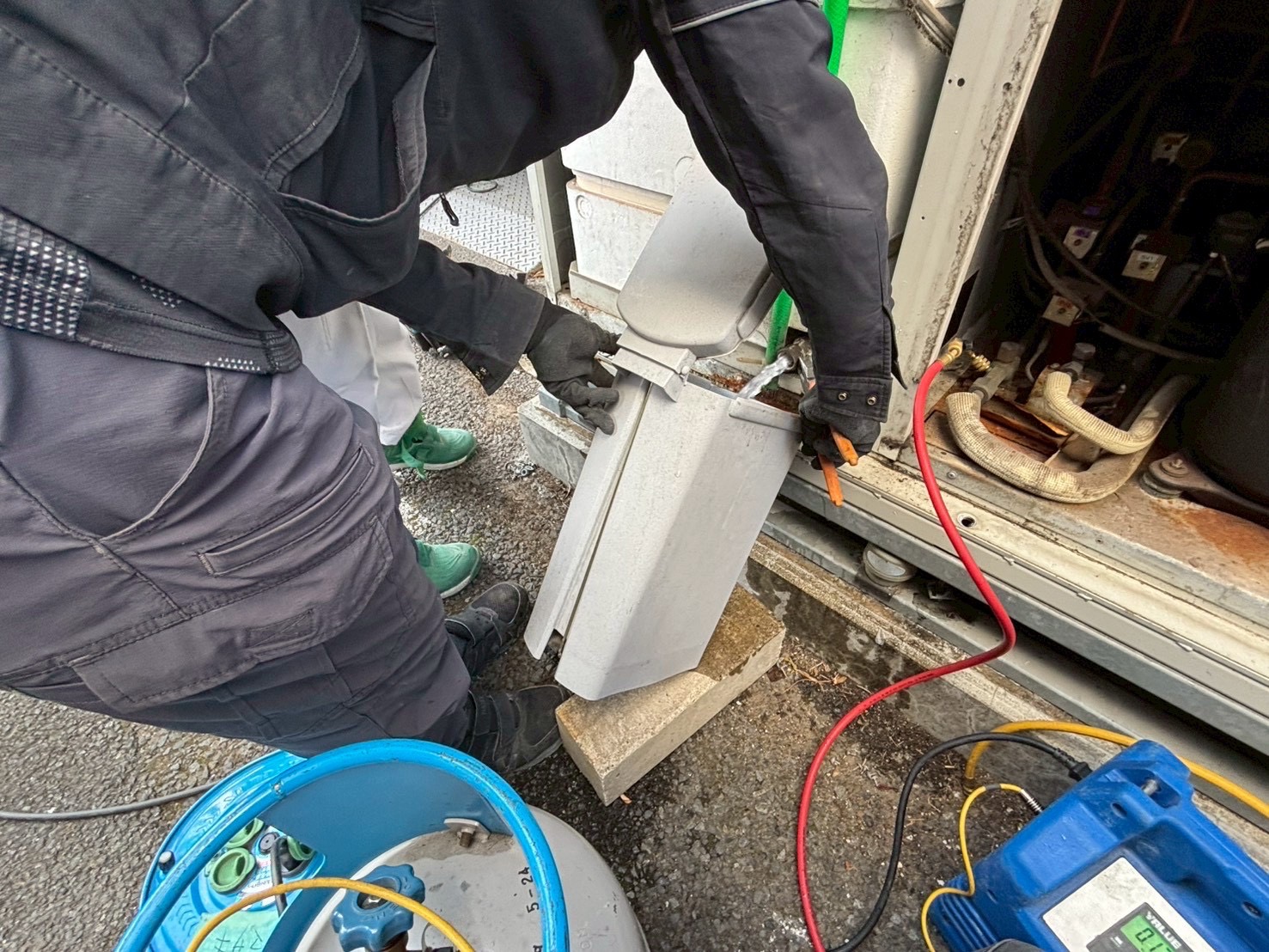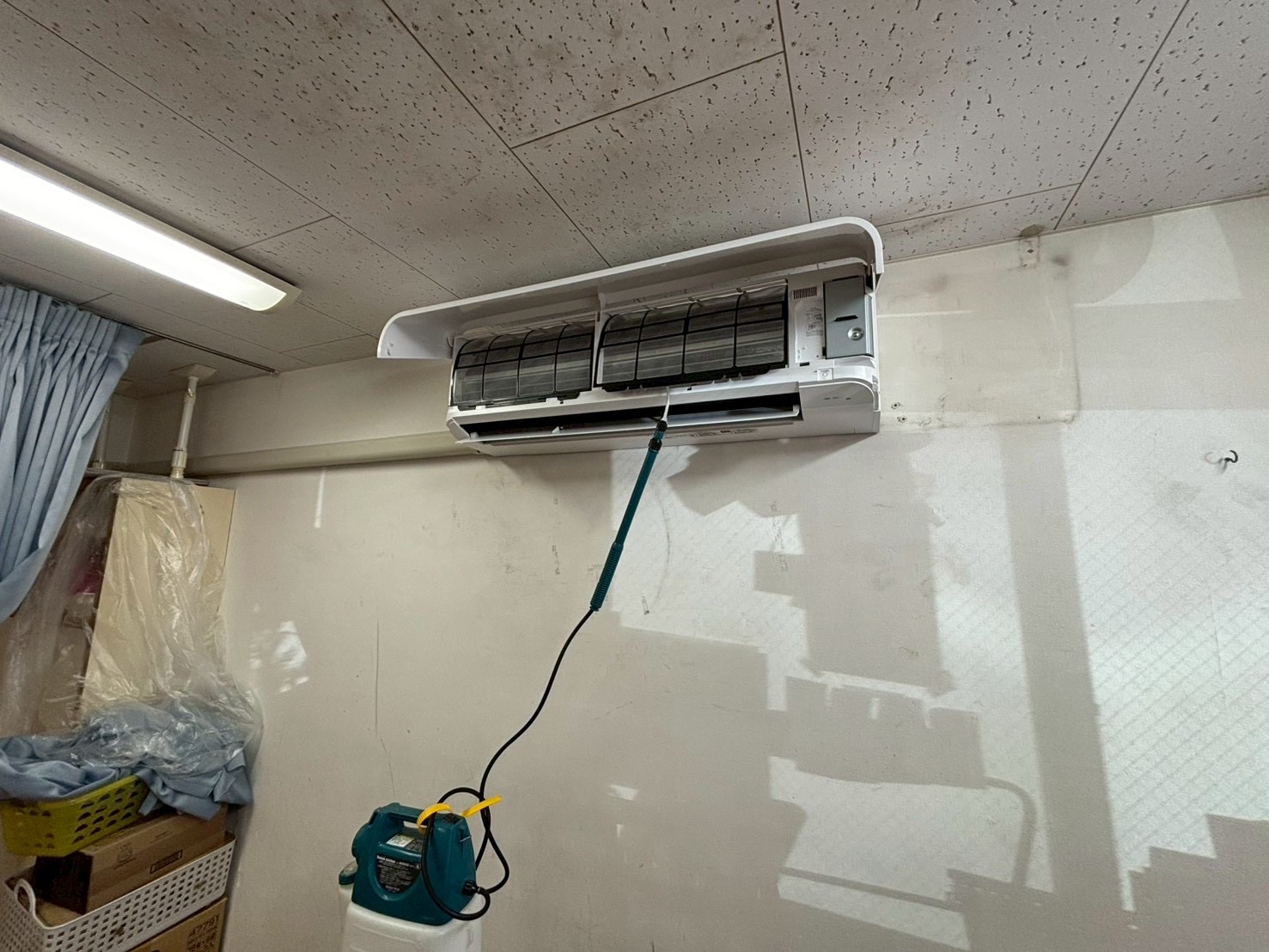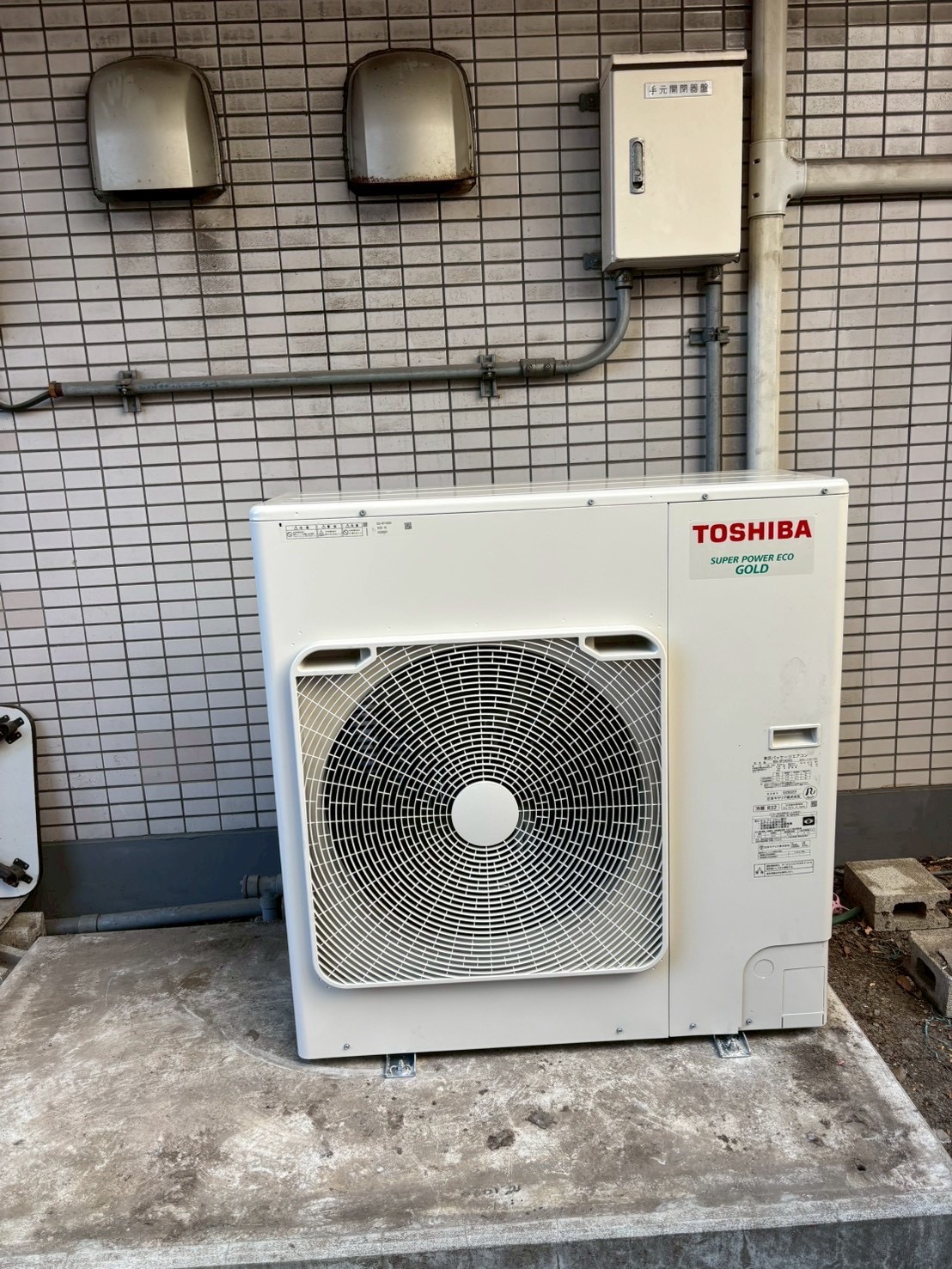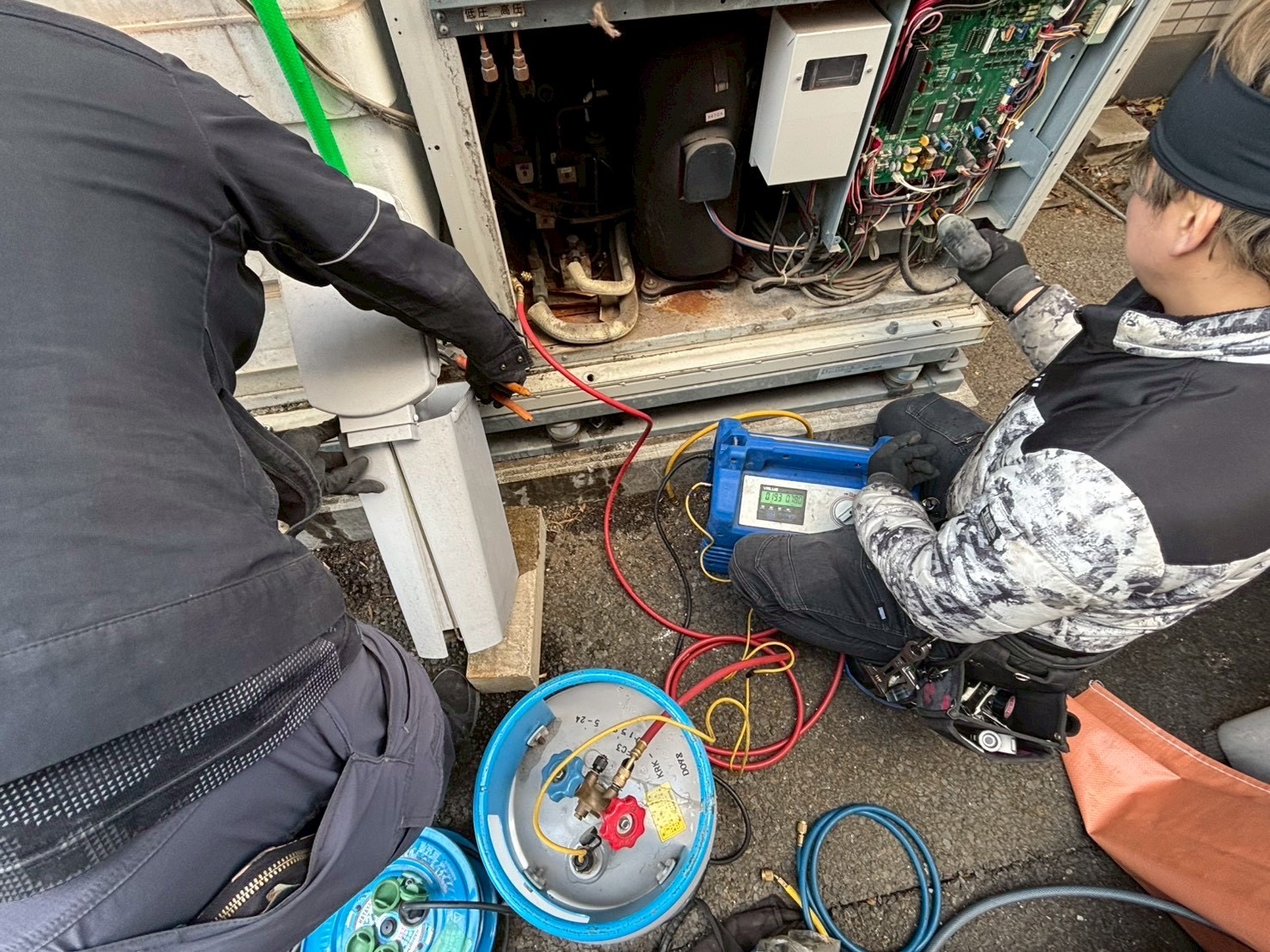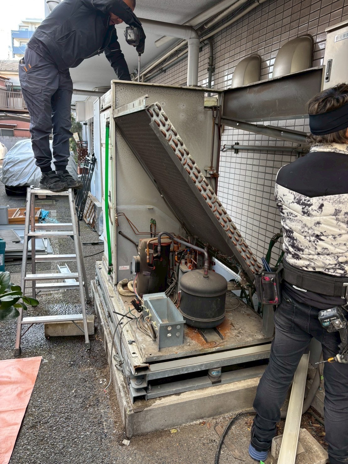 | 備考・コメント | 今回は、リピート保育園のお客様から古くパワーが出ずらくなってしまった業務用壁掛け同時ツイン形エアコン更新工事のご依頼頂き施工させて頂きました! ※同時ツイン形とは、リモコン1台で室内機複数台を同時に稼働させられるタイプのものです! エアコン更新時に同時→個別で動かせるように変更することも可能です♪ 既存機器は、古く本来の設定温度が出ていない・室外機が故障している状態でした。 作業経路・スペースが汚れないように養生作業からしていきます。 既存機器・配管類を取り外し、既存機器室外機(エコ・アイス)内の水抜きを行っていきます! 室外機は、大きなサイズでしたので解体撤去致しました! ※既存機器は、氷蓄熱システム東芝エコ・アイスが設置されておりました! 夜間室外機内に氷を生成蓄え、昼間冷房使用時に蓄えた氷を溶かし冷熱を利用するシステムの機器なので取り外しの際溶けた氷の水を抜く作業が必要です。 プロのエアコン専門店エアコンげんきではこの様な特殊なエアコンでも経験豊富な有資格者が問題なくご対応させて頂きますので是非ともお任せください♪ 外した機器のガス回収作業を行います! ※既存機器室外機内の冷媒ガスを回収する作業、フロン排出抑制法により冷媒ガス回収は義務となっております。エアコンげんきではガス回収作業を徹底しておりますのでご安心ください。 水平器を使用し室内機裏の背板を水平に設置し室内機を取付します! ※プロのエアコン専門店として見えないところもしっかりと施工させて頂きます♪ 既存機器は、設置から大分年数が経っておりましたので今回入替工事のタイミングで配管類も新しく引き直しさせて頂きました♪ 室外機も、大きく重たいので2名作業にて慎重に搬入据付作業致しました! 新しいワイヤードリモコンはバックライト付きで見やすく操作性も向上しております♪ エアコン入替設置後、配管真空引き・試運転を行い工事は5時間程で完了致しました! 園内は、暖房がしっかりと効き暖かく快適になり今回もお客様には大変喜んで頂けました♪ 現地調査・見積もり完全無料! グーグル口コミ高評価多数獲得中! 業務用エアコンの事は、プロのエアコン専門店エアコンげんきにお任せください! どんな環境でもエアコンげんきは、自信を持ってご納得の提案・施工をご案内させて頂きます!! 100%の満足をして頂けるようご対応させて頂きます! お客様からのお問い合わせ心よりお待ちしております♪ |