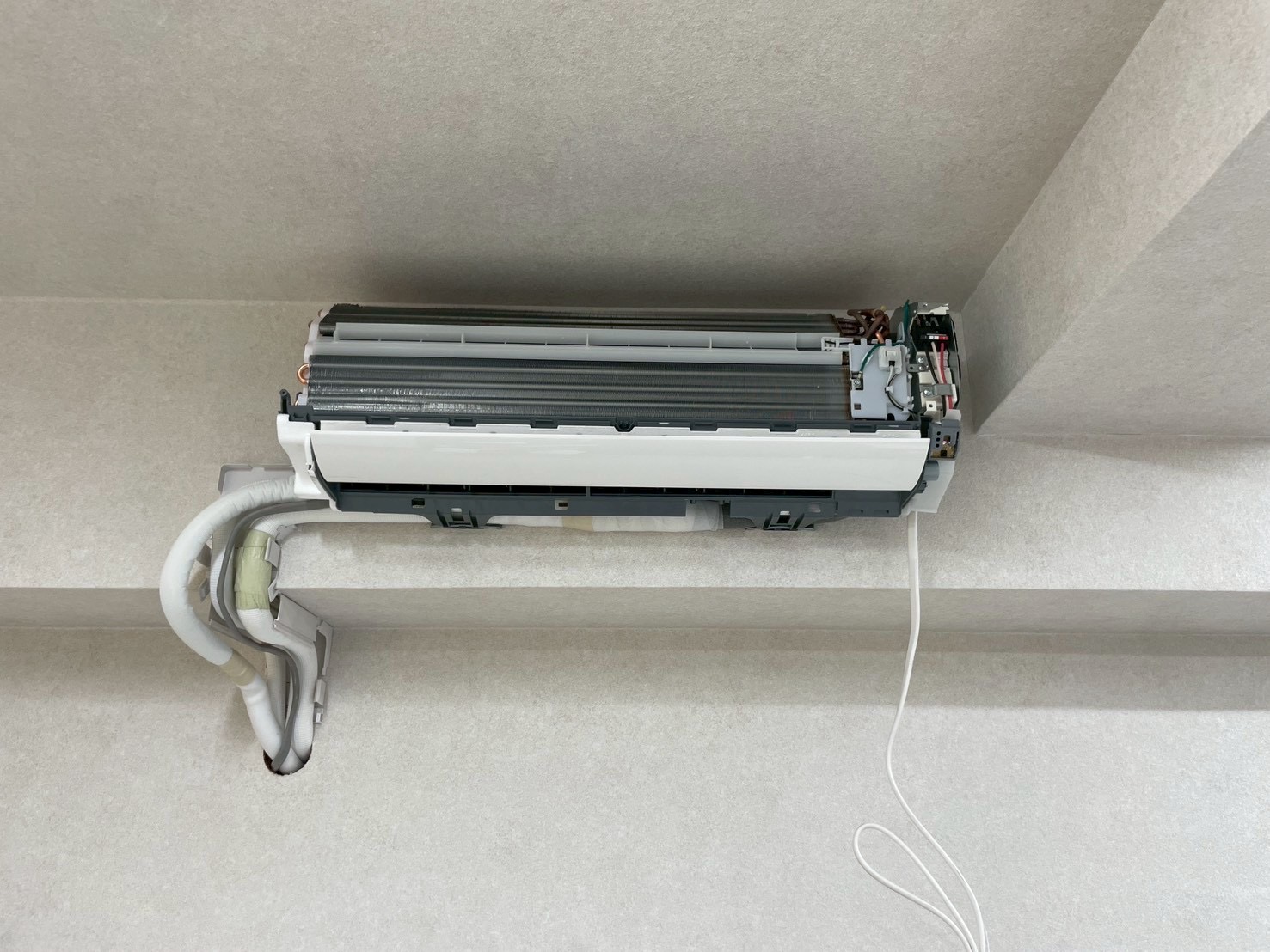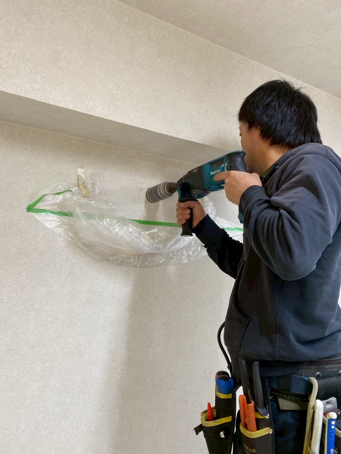 | 備考・コメント | 今回は、オープンを間近に控えているトレジャーキックボクシングジム様からオープン前にエアコン設置・配管穴が無いので穴あけ(RC造)・電源コンセントもないので電源工事もしたいとご相談頂き施工させて頂きました! ※プロのエアコン専門店エアコンげんきでは、無料現地調査の段階から経験豊富な有資格者がお客様に寄り添いベストなご提案をさせて頂きますのでお客様にお問い合わせ下さい♪ 現地調査をさせて頂きましたが、エアコンの配管穴が無く・電源もない為簡単にエアコン設置が出来ない状況でした。 新たにエアコン用配管穴を開ける必要がある為、効率よく風が送れるエアコン設置位置・ドレン配管勾配の問題がクリア出来る位置へ穴あけ工事(RC躯体コア抜き)作業をしていきます! ※お客様にて穴あけ工事許可を建物所有者様から事前に頂いておりました。 ※外注工事となりますが、躯体レントゲン検査・時短で穴あけ工事も可能です。 今回の穴あけ工事は、外注工事にて30分程度で綺麗に穴が開き無事完了致しました♪ 室内機をかける背板を取付します。 弊社では、必ず背板が水平に設置されているか水平器を使い確認しております。 ※プロのエアコン専門店エアコンげんきでは、見えないところもしっかりと施工しておりますのでご安心してお任せください♪ 室内室外美観を損なわない様、配管カバー取付し綺麗に仕上げました! エアコン用200Vコンセントが無かった為、今回は電源増設工事も行いコンセントを作成致しました! 分電盤からコンセント迄の配線は、モールカバー仕上げにて綺麗に仕上げさせて頂きました! ※プロのエアコン専門店エアコンげんきでは、電源工事も経験豊富な有資格者がご対応させて頂きますのでご安心してお任せ下さい♪ 室外機は、既存金具を調整再利用し設置致しました! 配管真空引き作業・試運転・通水テストを行い作業完了です。 今回は、1名作業にて約4時間程にて完了致しました! お客様からは、対応力・作業のスピード感に満足して頂けて嬉しい限りです♪ 他社様にお断りされてしまった・設置状況が複雑な難工事はプロのエアコン専門店エアコンげんきに是非ともお任せ下さい!! 現地調査・見積もり完全無料! お客様からのグーグル口コミ高評価多数獲得中! プロのエアコン専門店だからこそ価格・対応力・提案内容・施工に絶対の自信を持ってます♪ ルームエアコンの事はプロのエアコン専門店エアコンげんきに是非ともご安心してお任せください! お客様に100%満足をして頂けるよう有資格者が丁寧に寄り添いご対応させて頂きます! お客様のお問い合わせ心よりお待ちしております♪ |
