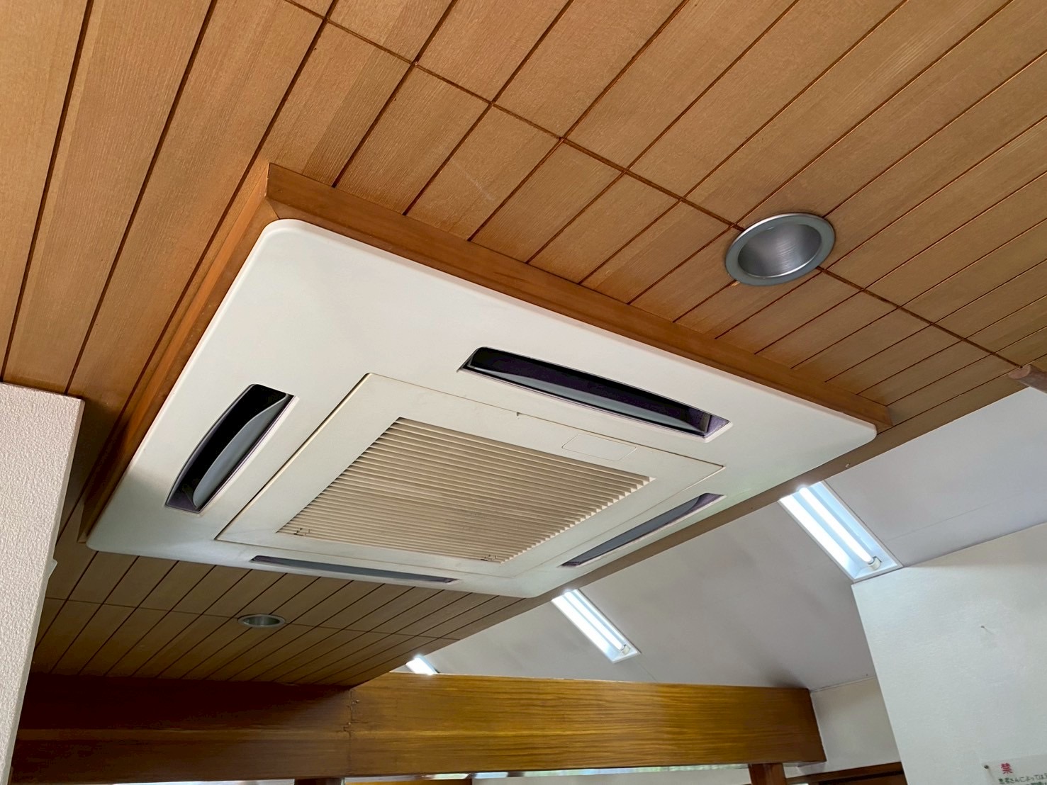 【2025年7月:ダイキン】自宅リビング業務用天井カセット4方向同時ツイン形エアコン更新工事
